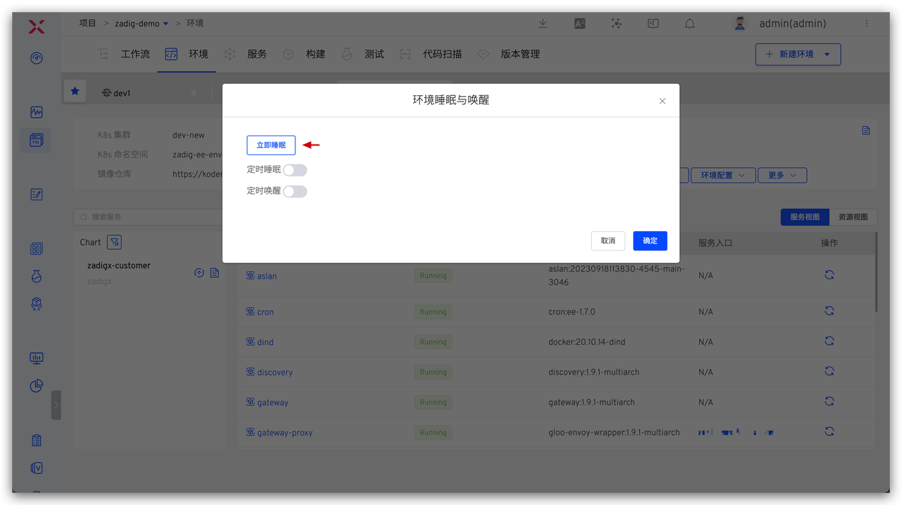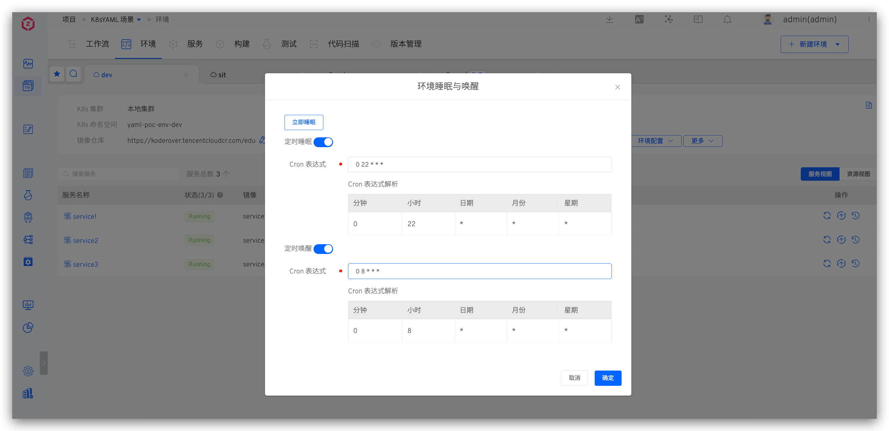 进入环境,点击睡眠与唤醒 → 配置定时睡眠和唤醒 Cron 表达式即可。