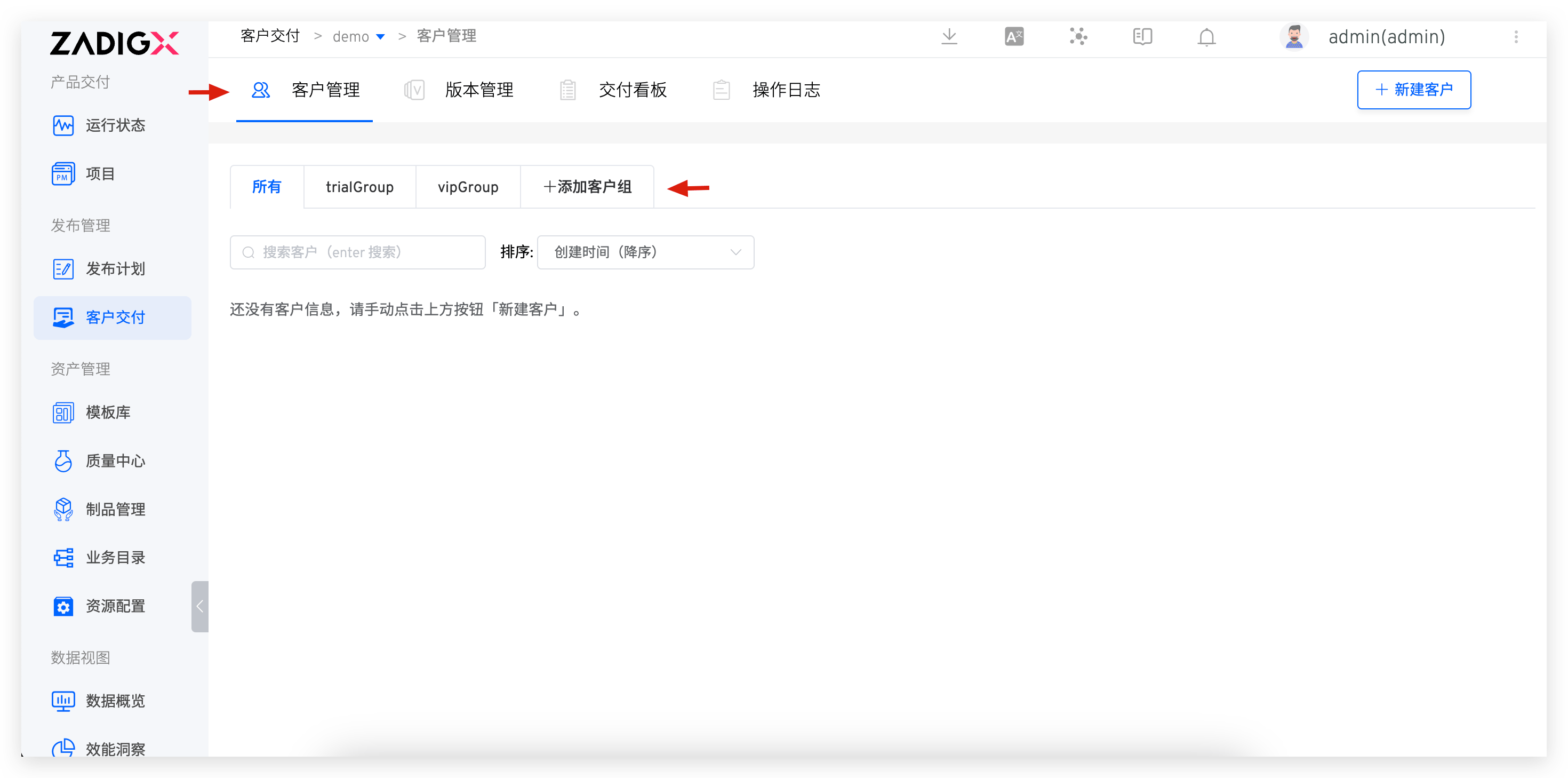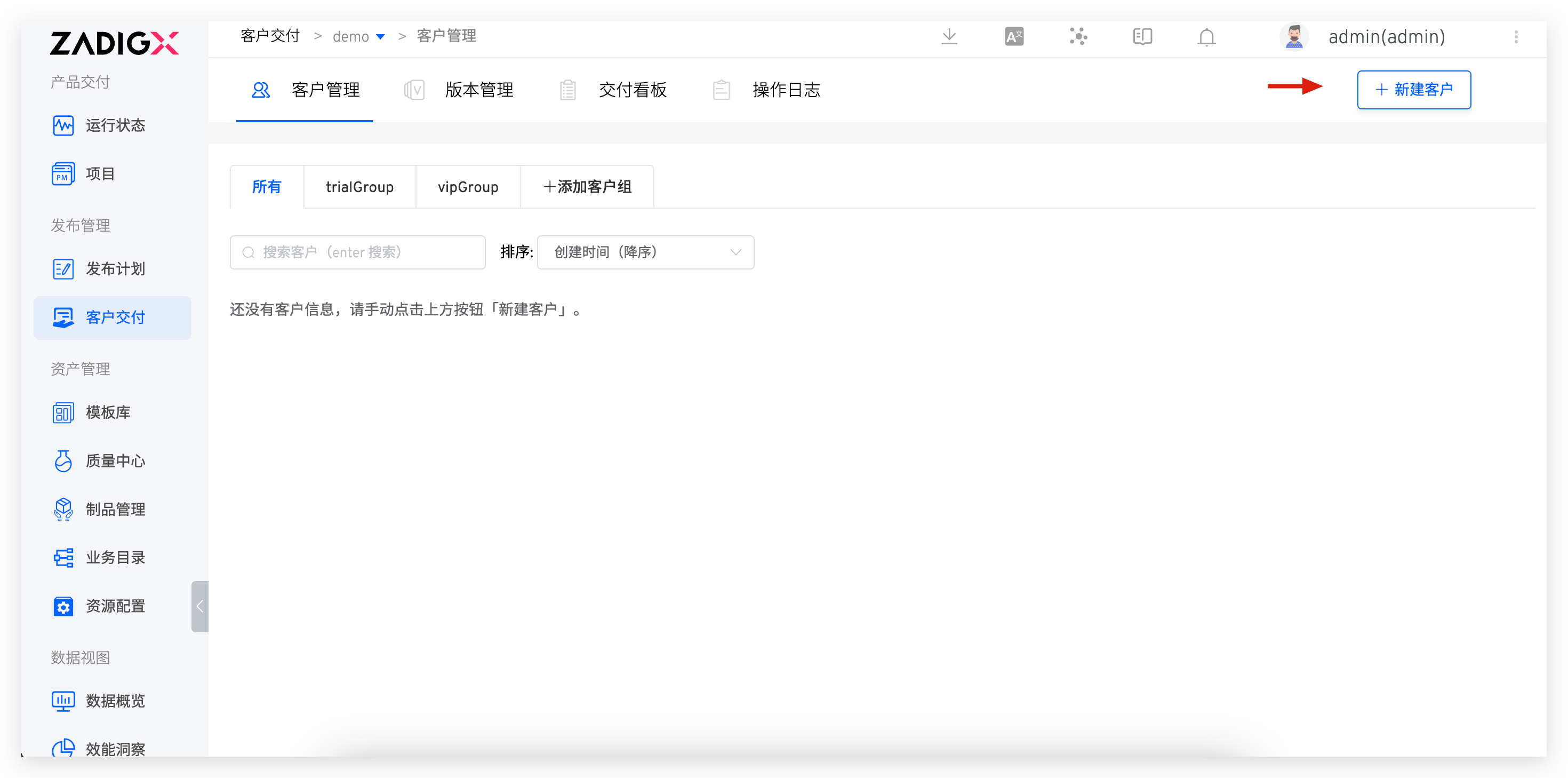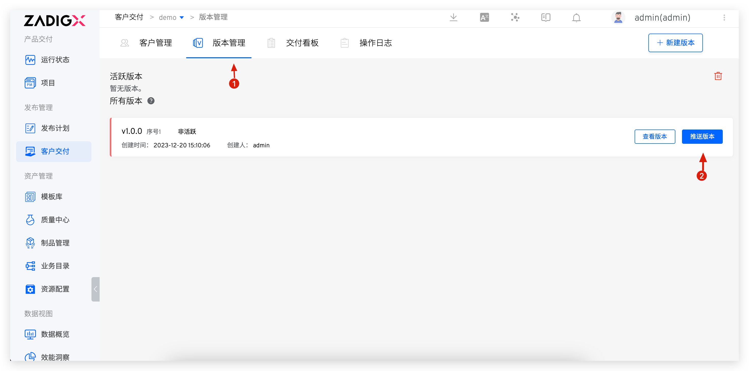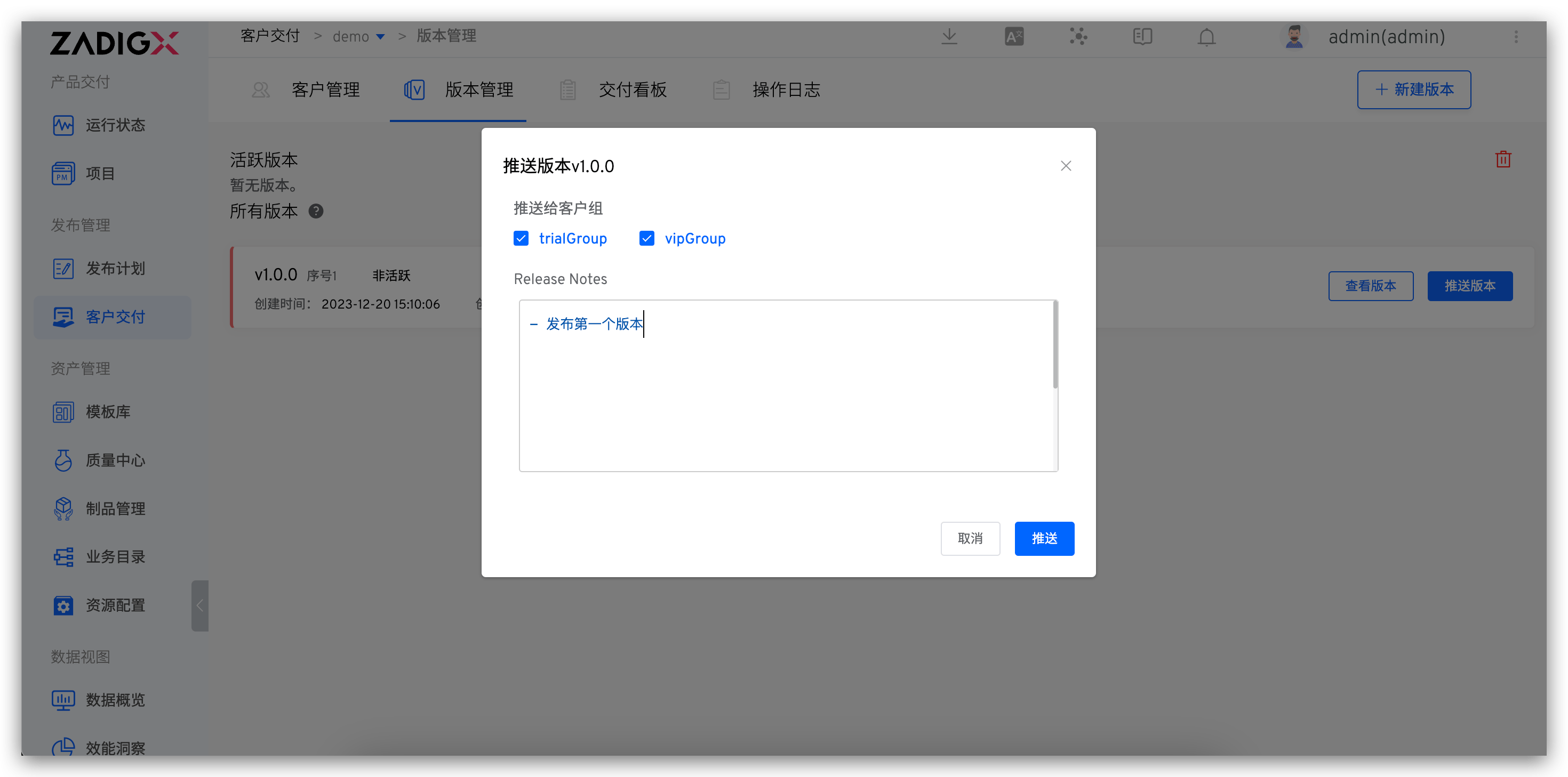 推送版本,选择需要推送的客户组,填写 Release Notes - 点击
