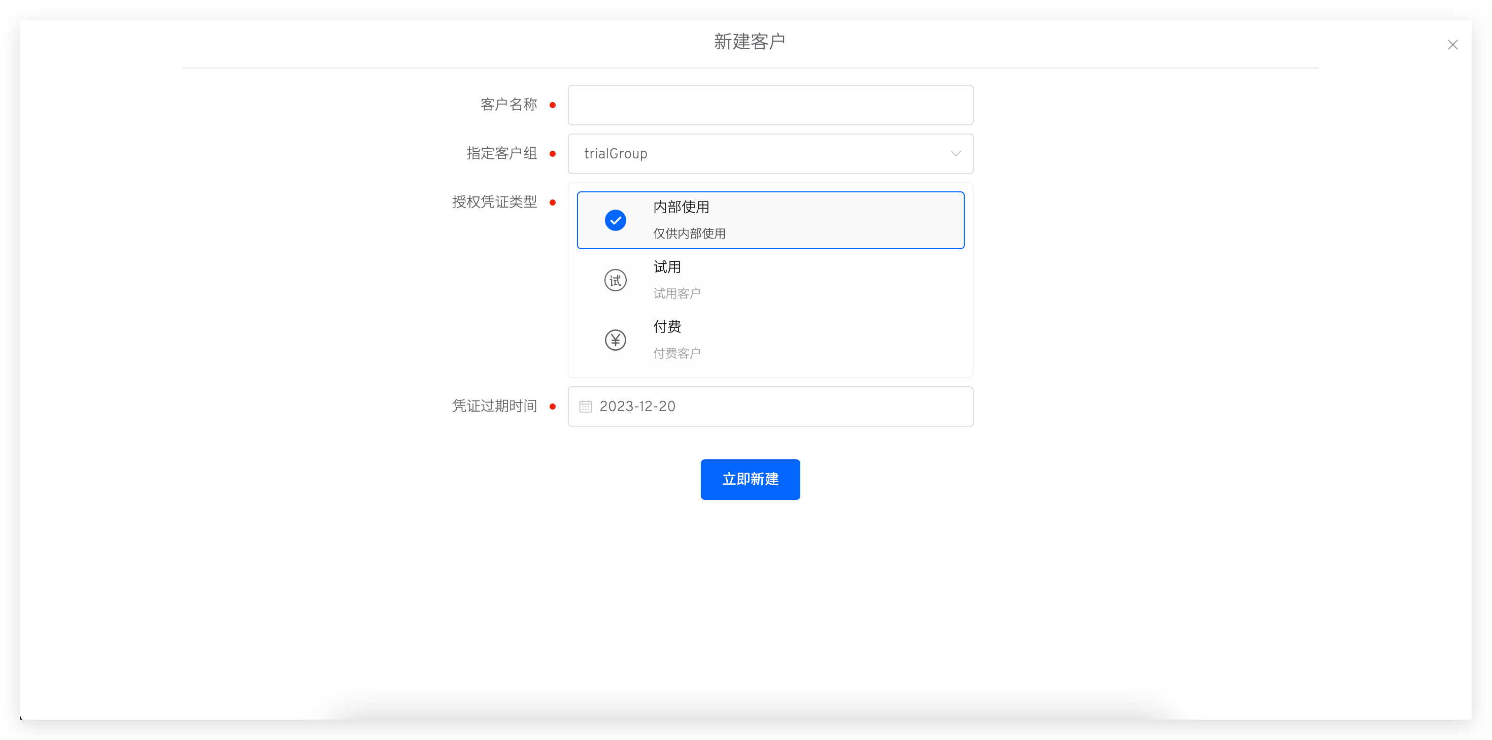 - 授权凭证过期时间:超过过期时间,客户控制台不再获取供应商提供到的新版本
