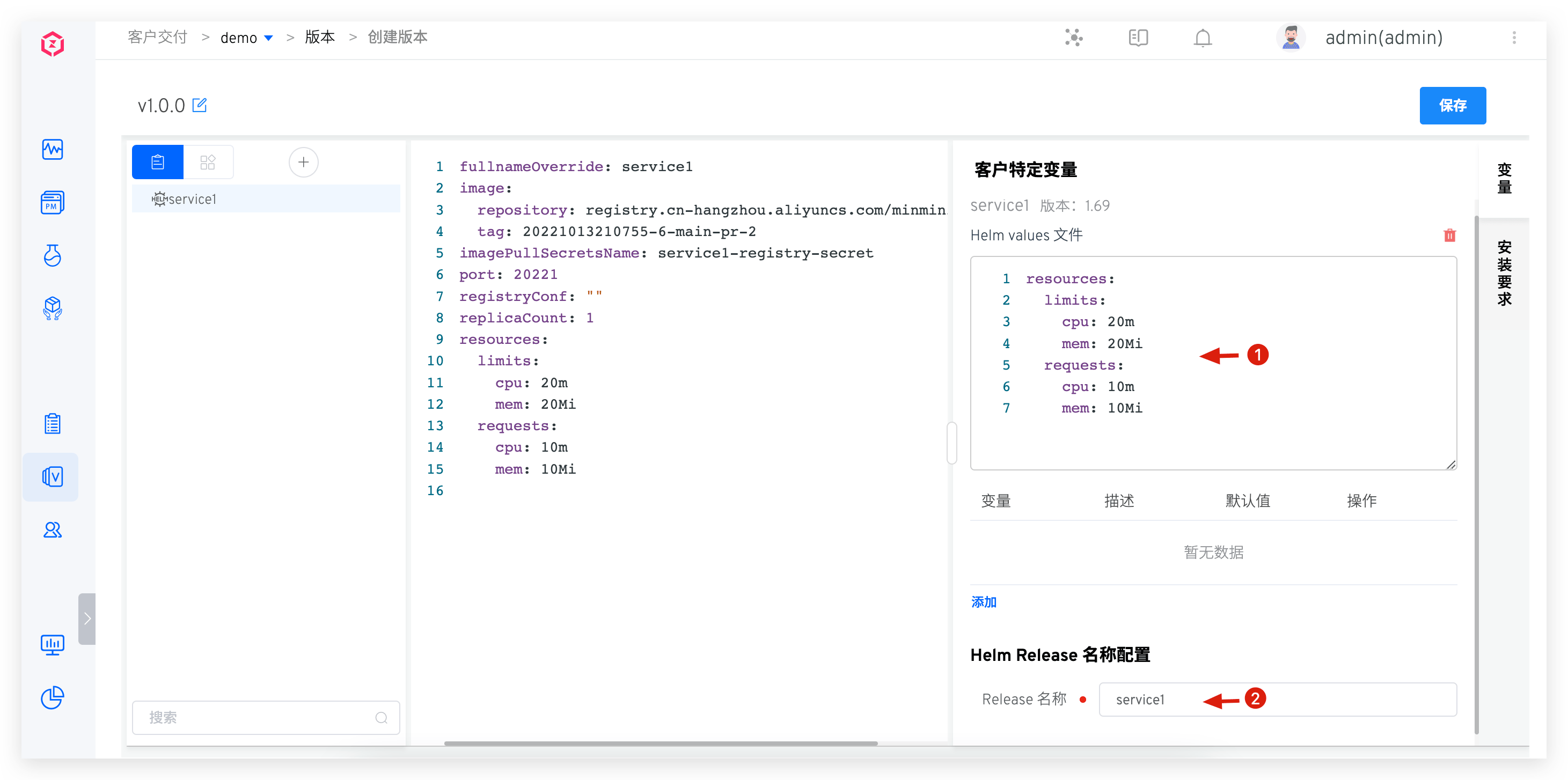 - 配置客户特定变量:暴露出少量配置供用户安装时根据自己环境的实际情况,配置相应的变量值