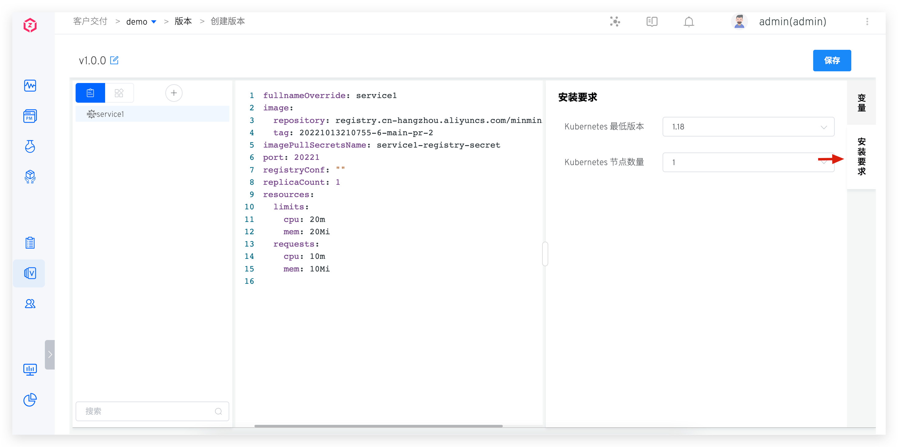 安装要求,根据应用对环境资源的实际要求配置,可以配置如下信息- Kubernetes 最低版本