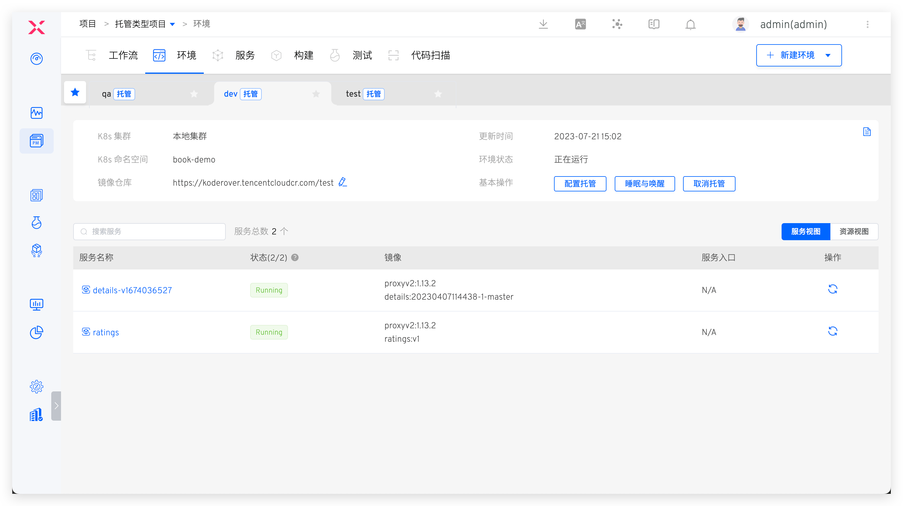 点击基本操作中的取消托管,可取消对当前环境中服务的托管,取消后环境将被删除。