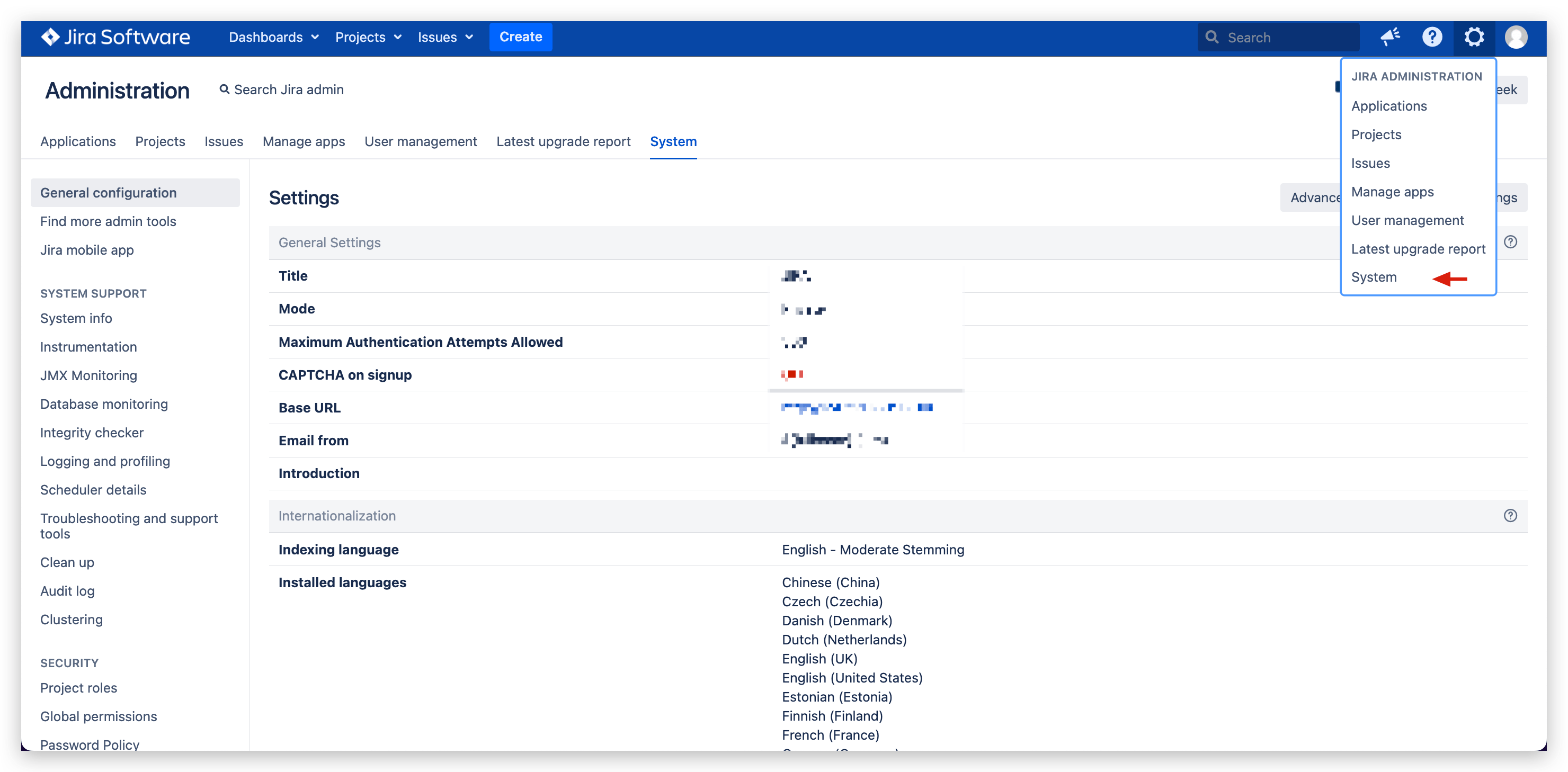 访问 JIRA 系统 -> 点击右上角的 设置 图标 -> 点击 System -> 在左侧 ADVANCED 下找到 Webhook。