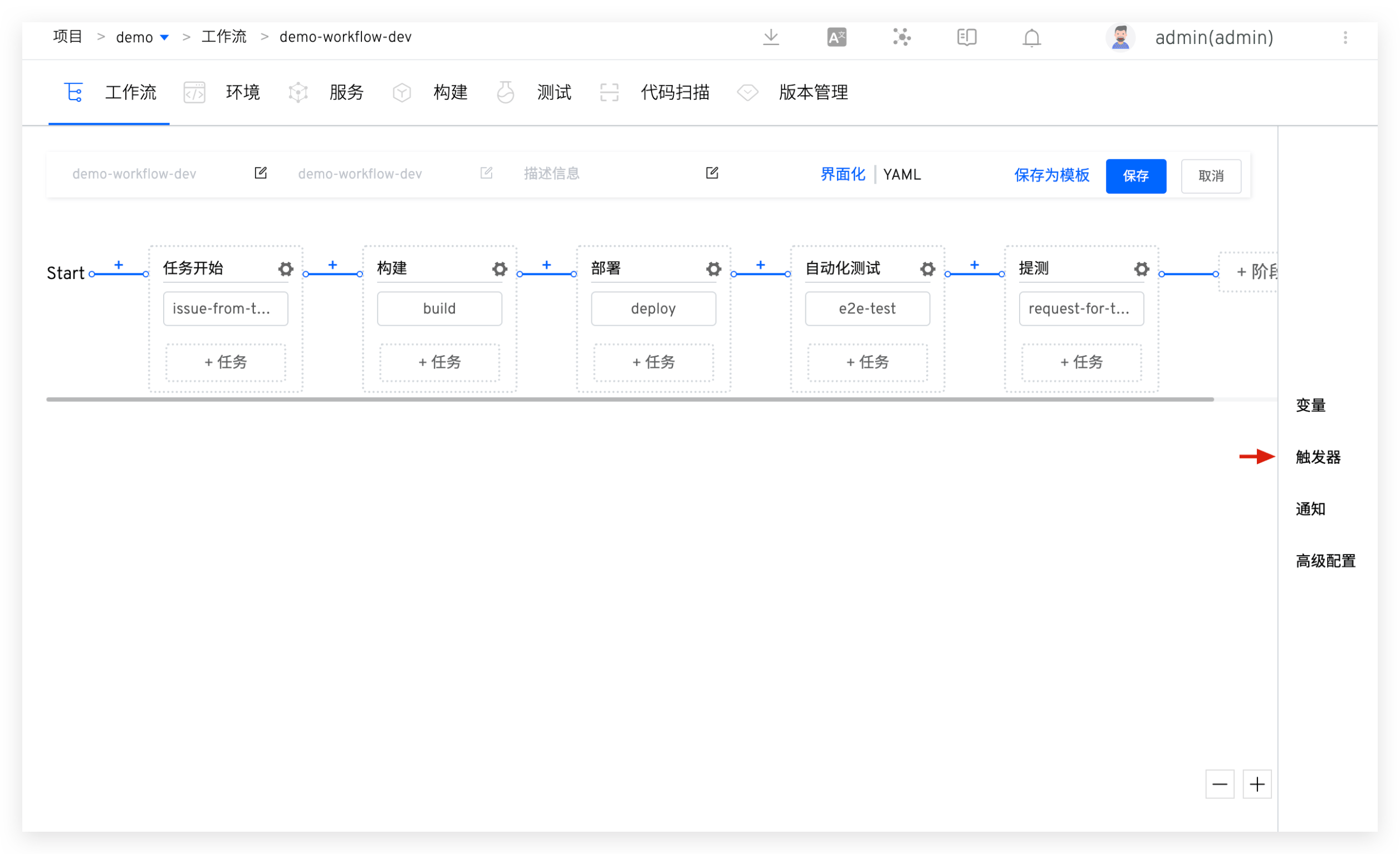 点击工作流右侧的 触发器。