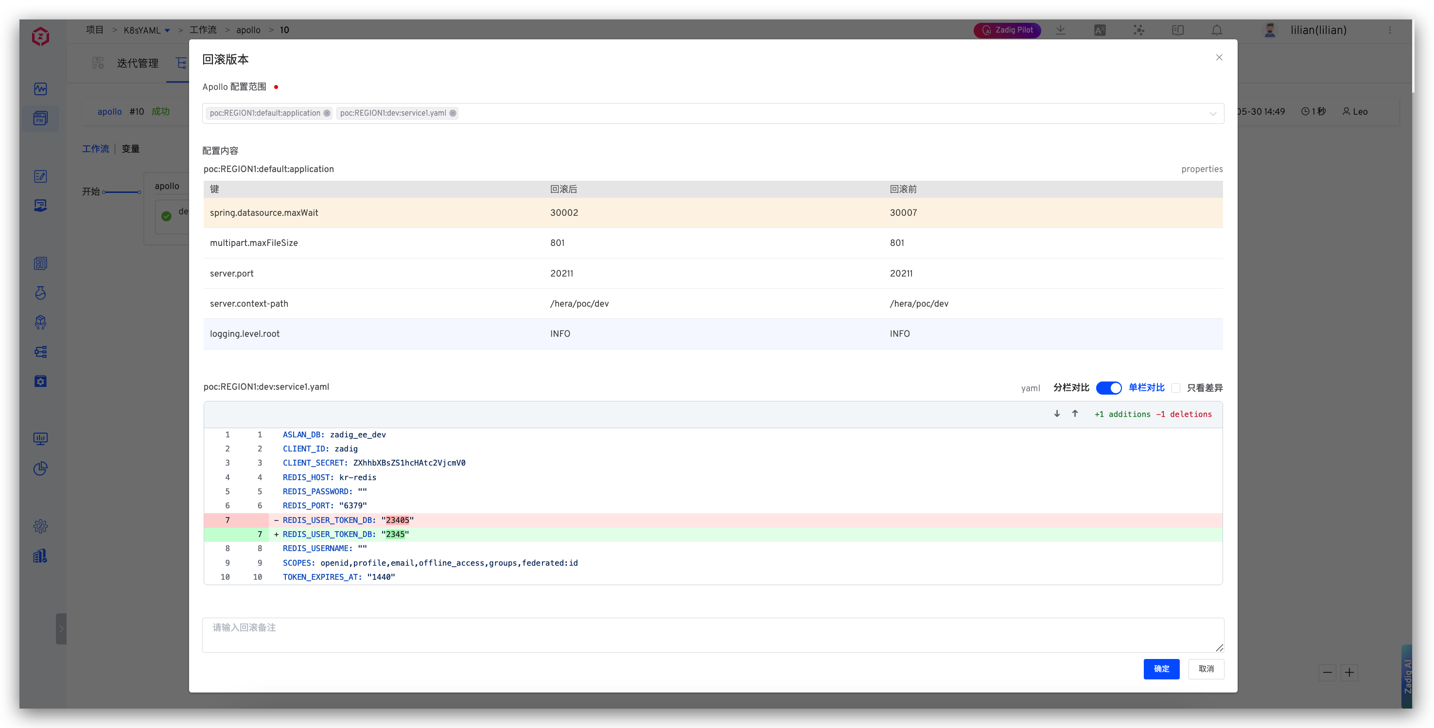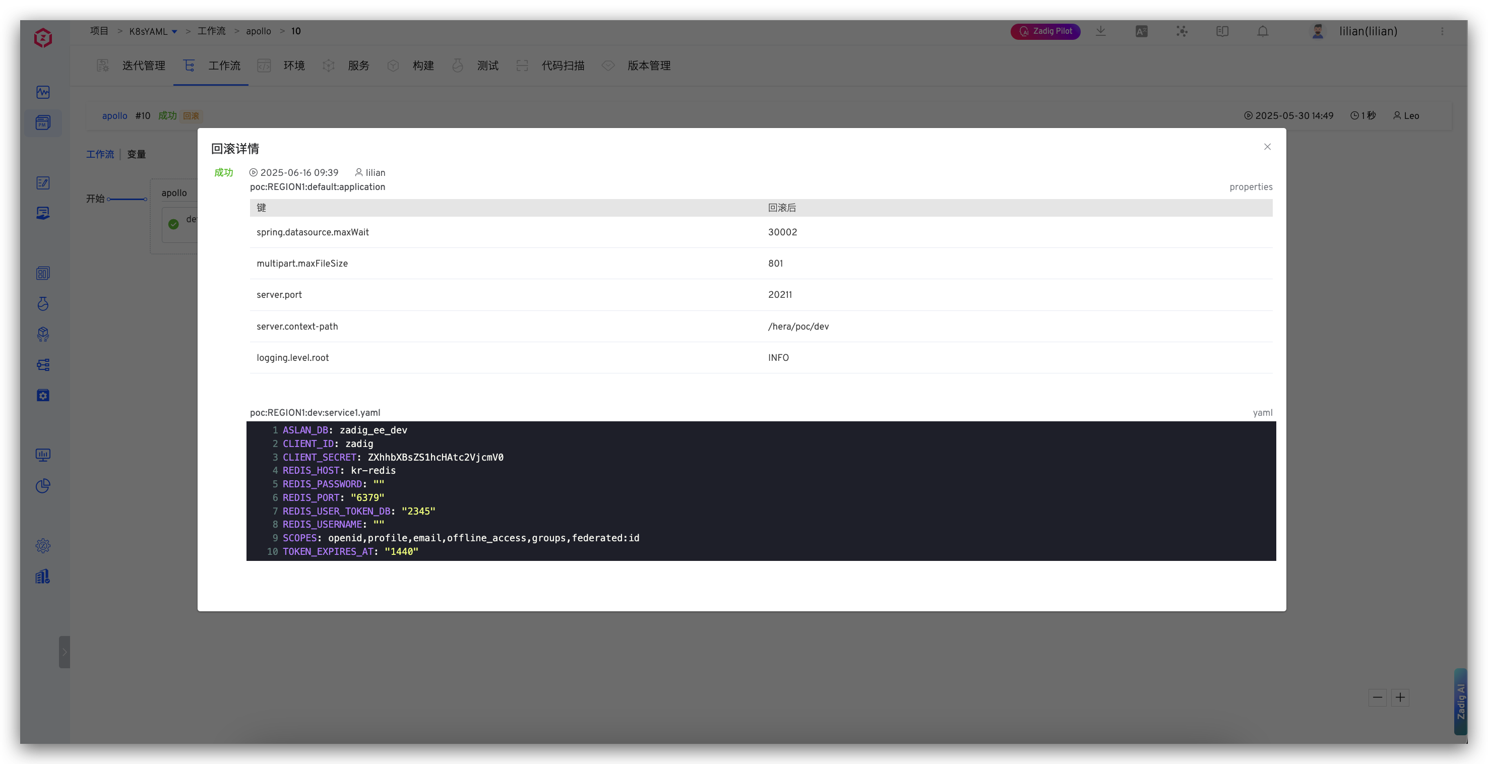 生产发布如果出现问题时,可以直接通过工作流进行配置的回滚。