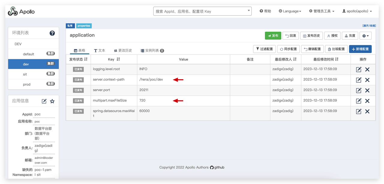 为控制多环境使用和变更权限,例如仅允许开发人员修改开发环境配置,不可修改其他环境配置。在 Zadig 上可以通过设置 Apollo 配置范围来实现配置修改权限的控制,确保系统环境稳定性。