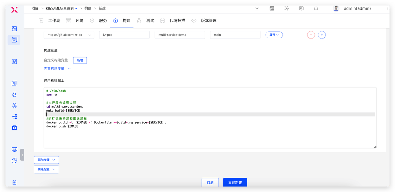 下面以一个多服务的代码仓库的构建并推送镜像为例,比较 Jenkins 脚本编写和 Zadig 脚本编写的差异。