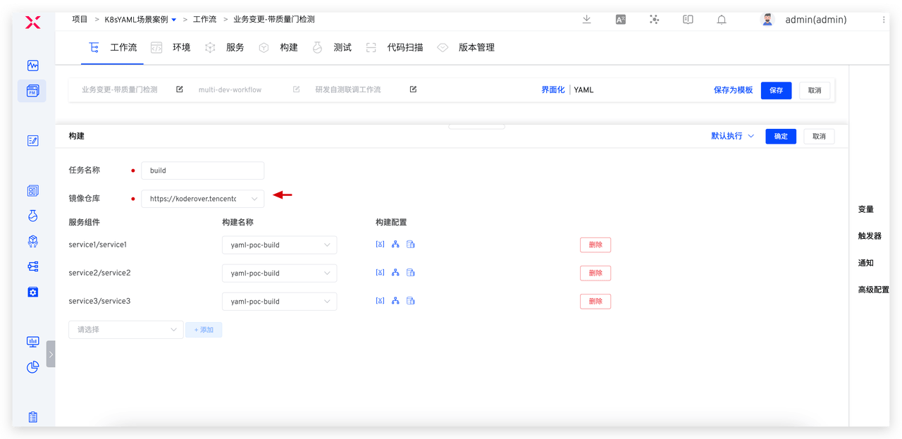 Zadig 的工作流本身采用了服务化的设计,使得测试、代码扫描等配置可以实现集中化的管理,然后轻松挂接到各个工作流中使用。这种设计使得配置和管理变得更加高效,同时在不同的工作流中灵活地应用这些服务,提高了整体工作流的可维护性和可扩展性。