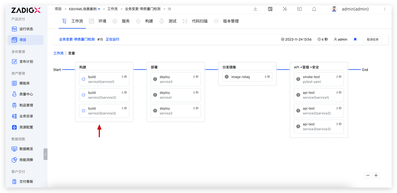 • 支持多服务的并发构建、并发部署、并发测试