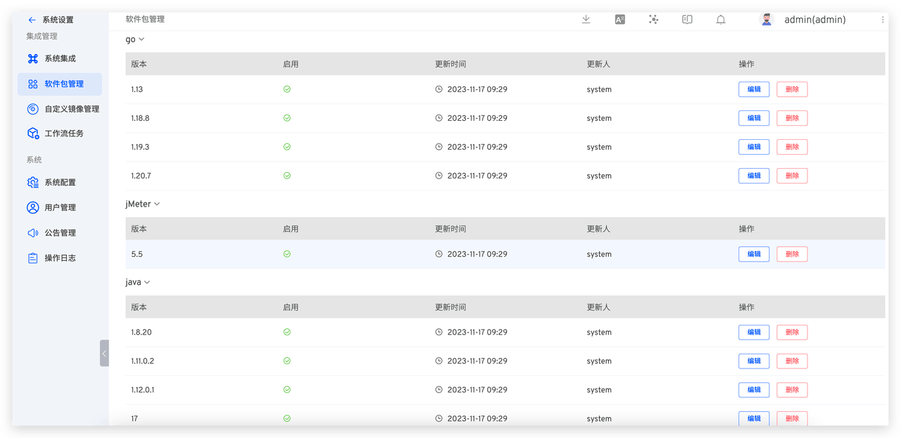 对于工作流任务依赖的环境,在 Jenkins 上需在对应节点上手工制作,而在 Zadig 上支持管理任务运行时基础环境和依赖的软件包,方便平台运维统一管控业务构建、测试等过程使用的基础资源,保障资源的安全及合规。