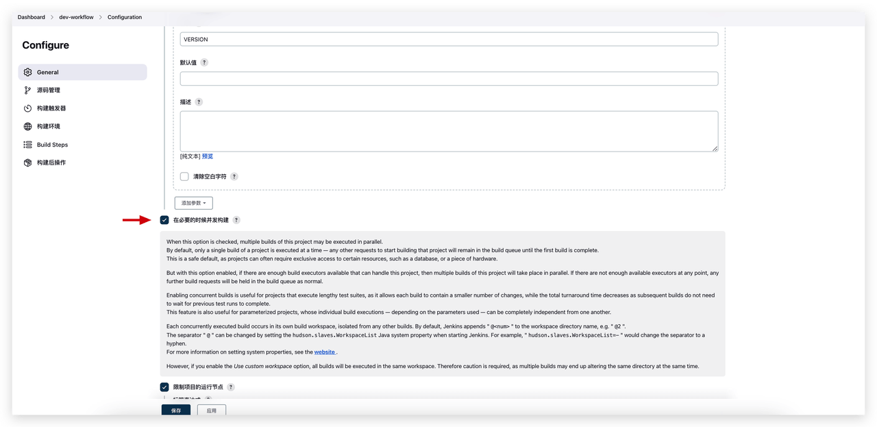 Jenkins 和 Zadig 均支持同一工作流的多个任务并发执行。Jenkins 通过资源节点来控制并发数量,而 Zadig 则统一管理并发调度策略,具有灵活控制任务优先级能力。 Jenkins 通过在节点上配置「任务执行数量」来控制多个任务的并发,单个 Jenkins 任务的并发可以在任务配置中指定。