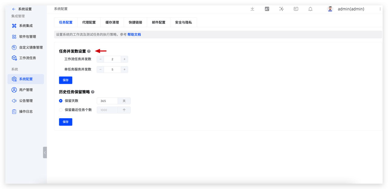 Zadig 通过在任务配置中修改「任务并发数量设置」实现并发数控制,其中「工作流任务并发数量」控制同时执行的工作流任务数,「单任务服务并发数」控制同一个工作流任务中服务的并发数量。除此之外,面对低优先级任务占用全局并发数量的场景,可以通过配置工作流的「执行并发数」来解决。Zadig 具有更自由的任务并发数控制,能够灵活应对企业内部复杂的任务并发场景。