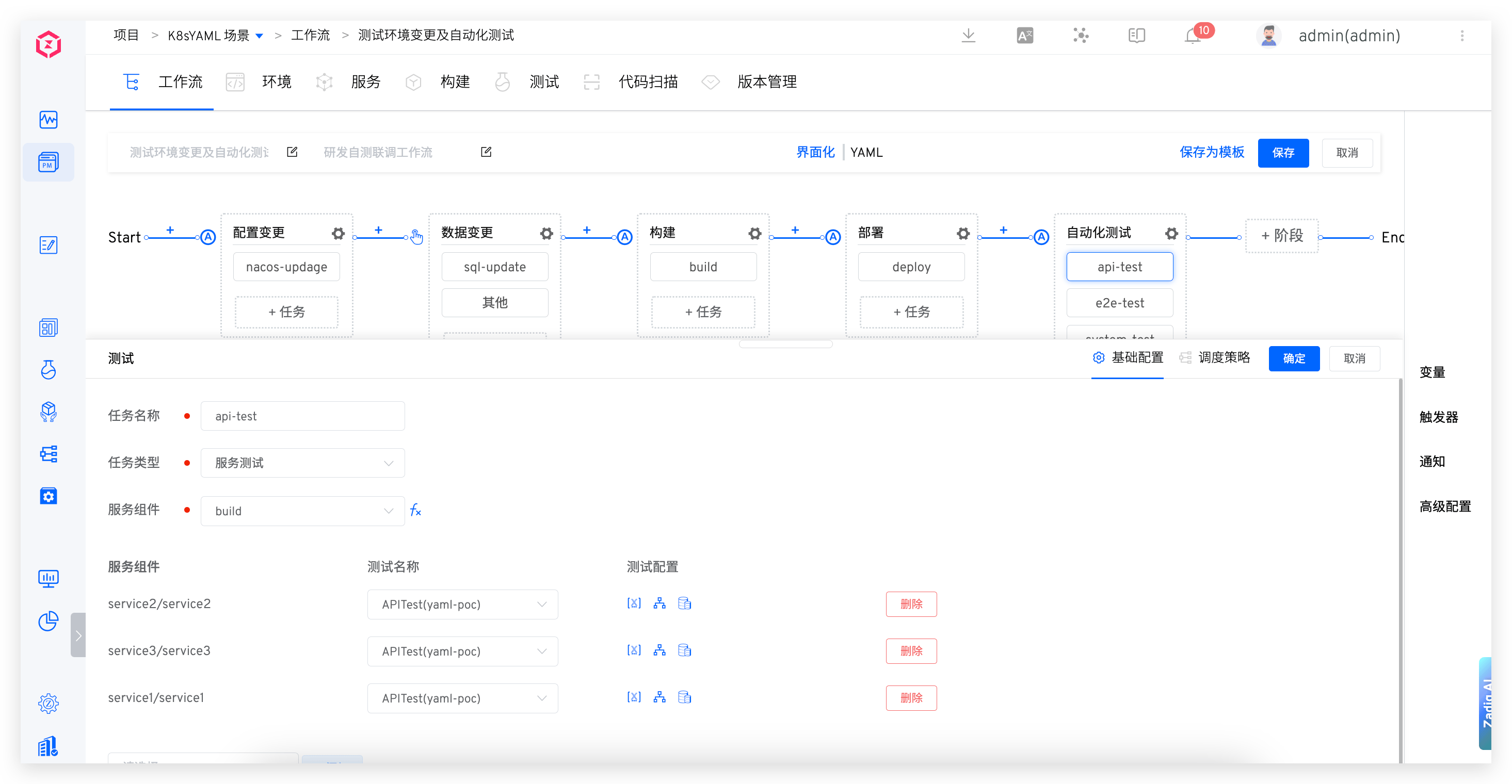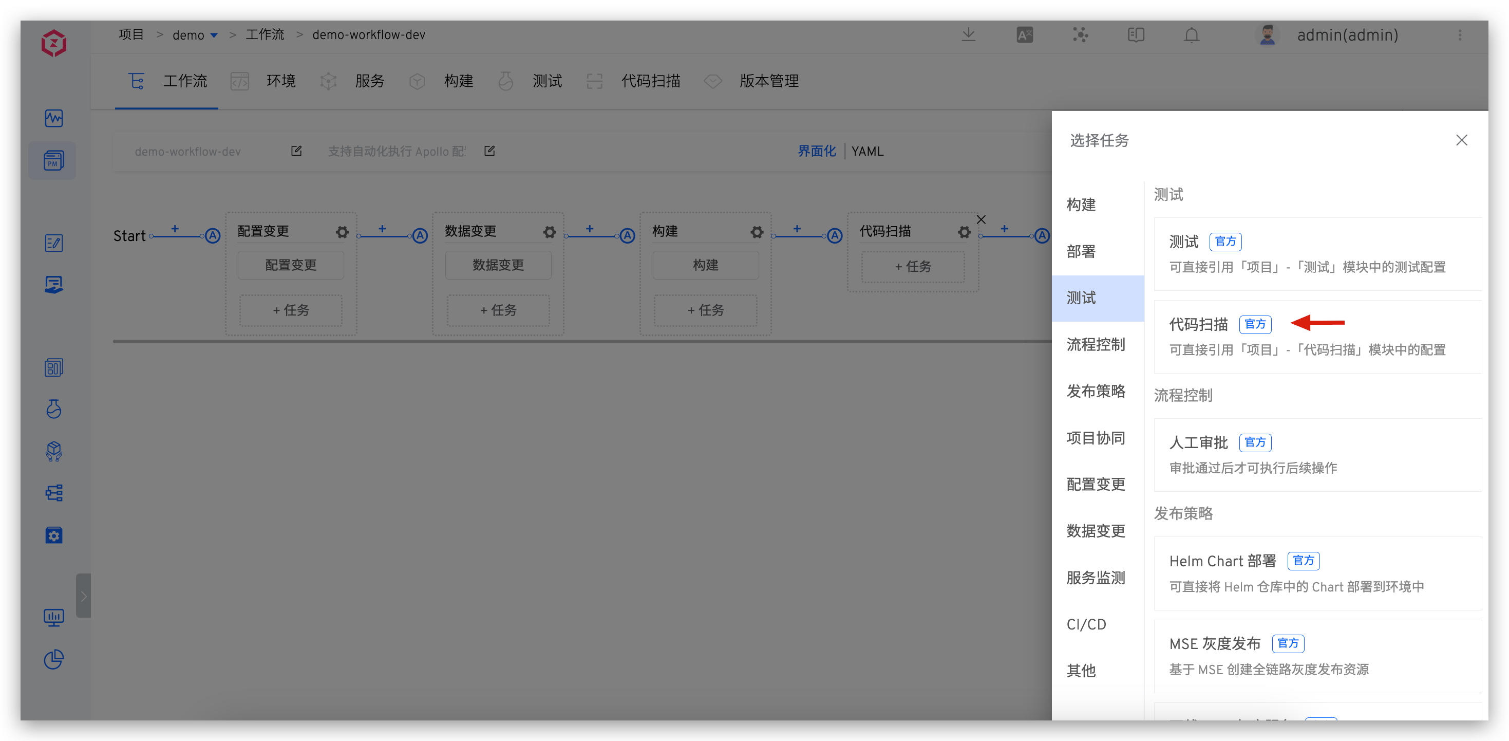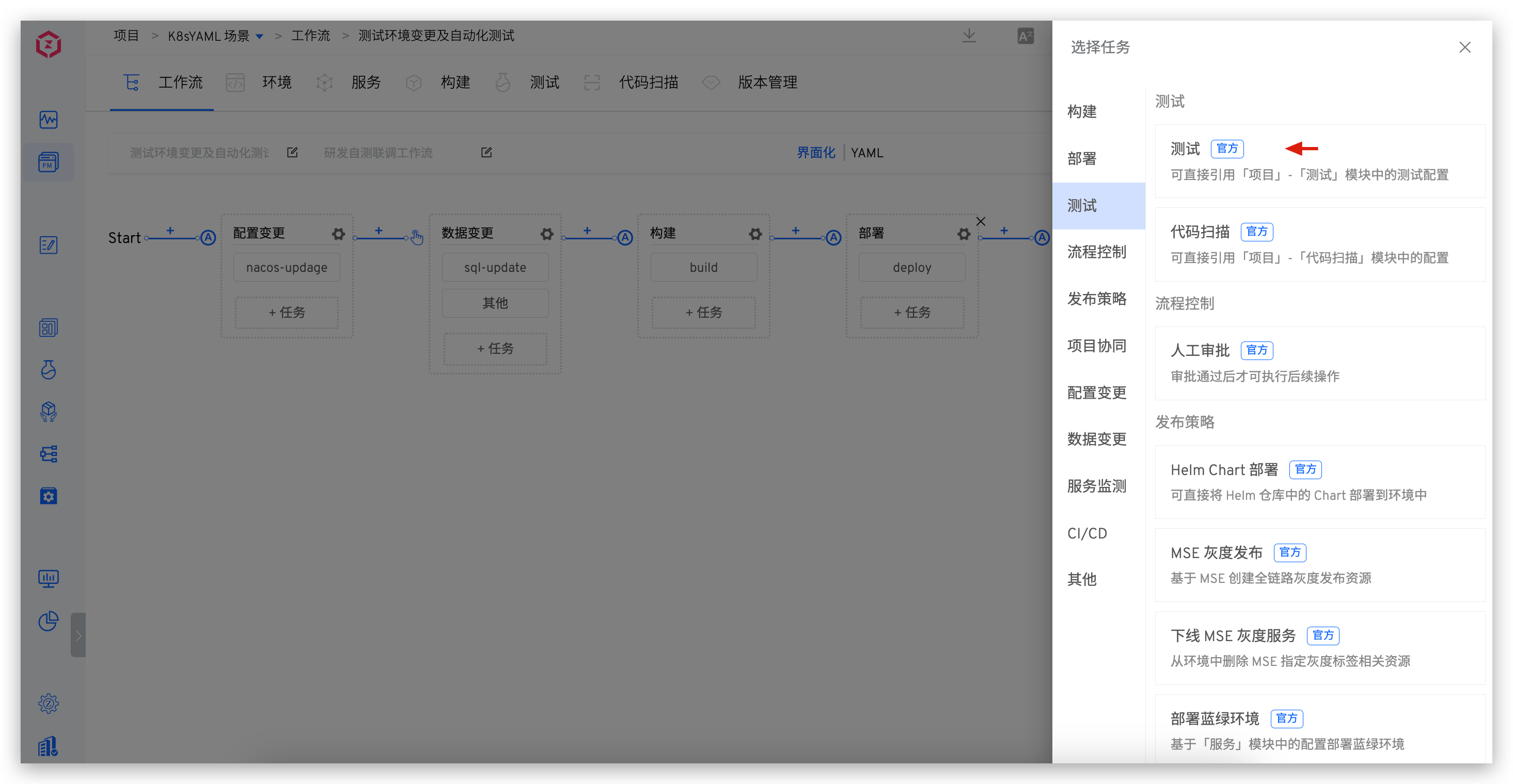 工作流具备构建、部署、测试、生产发布、项目协同、配置变更、数据变更、服务监测等能力,本文介绍这些能力对应的任务如何配置使用。