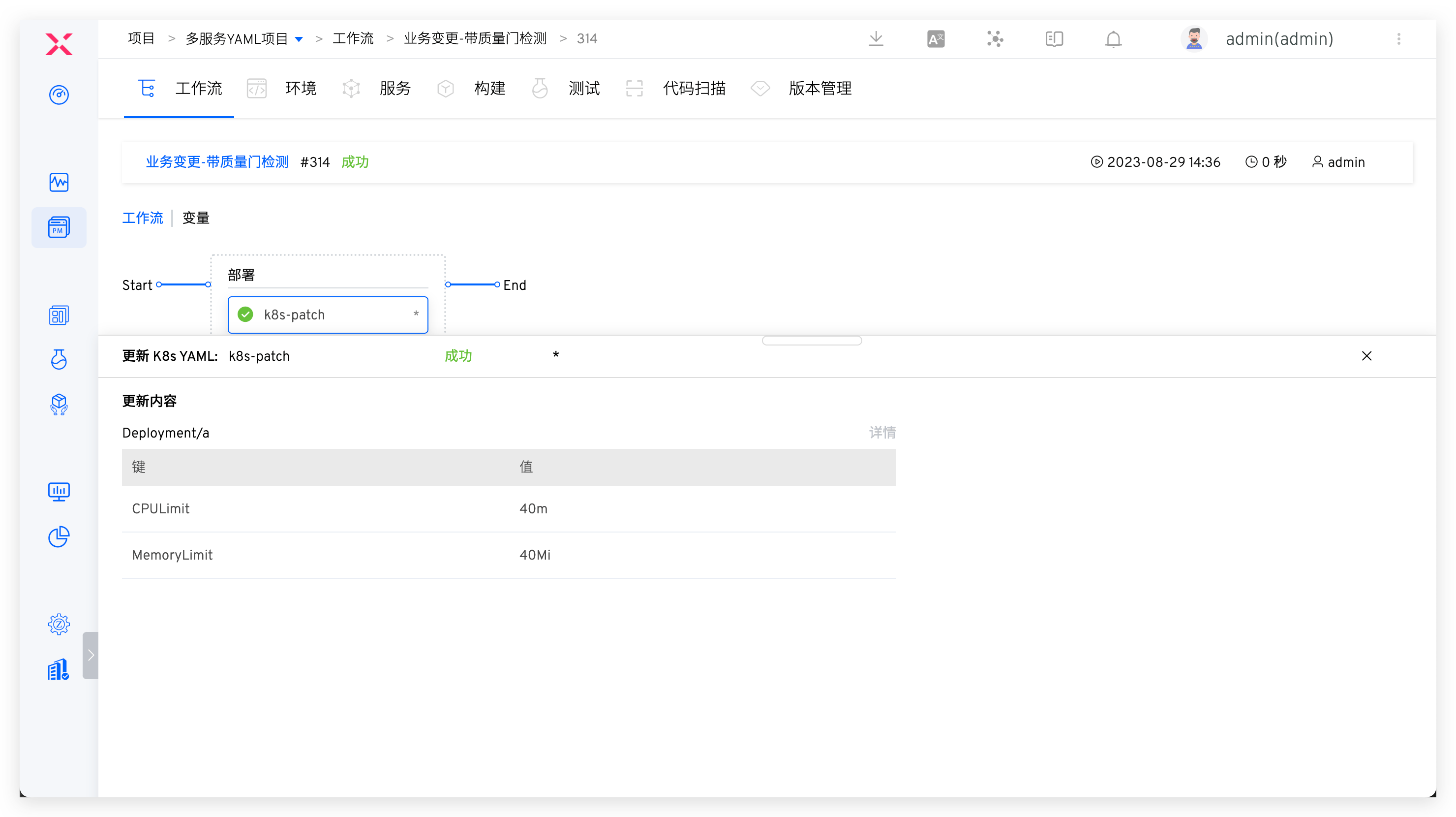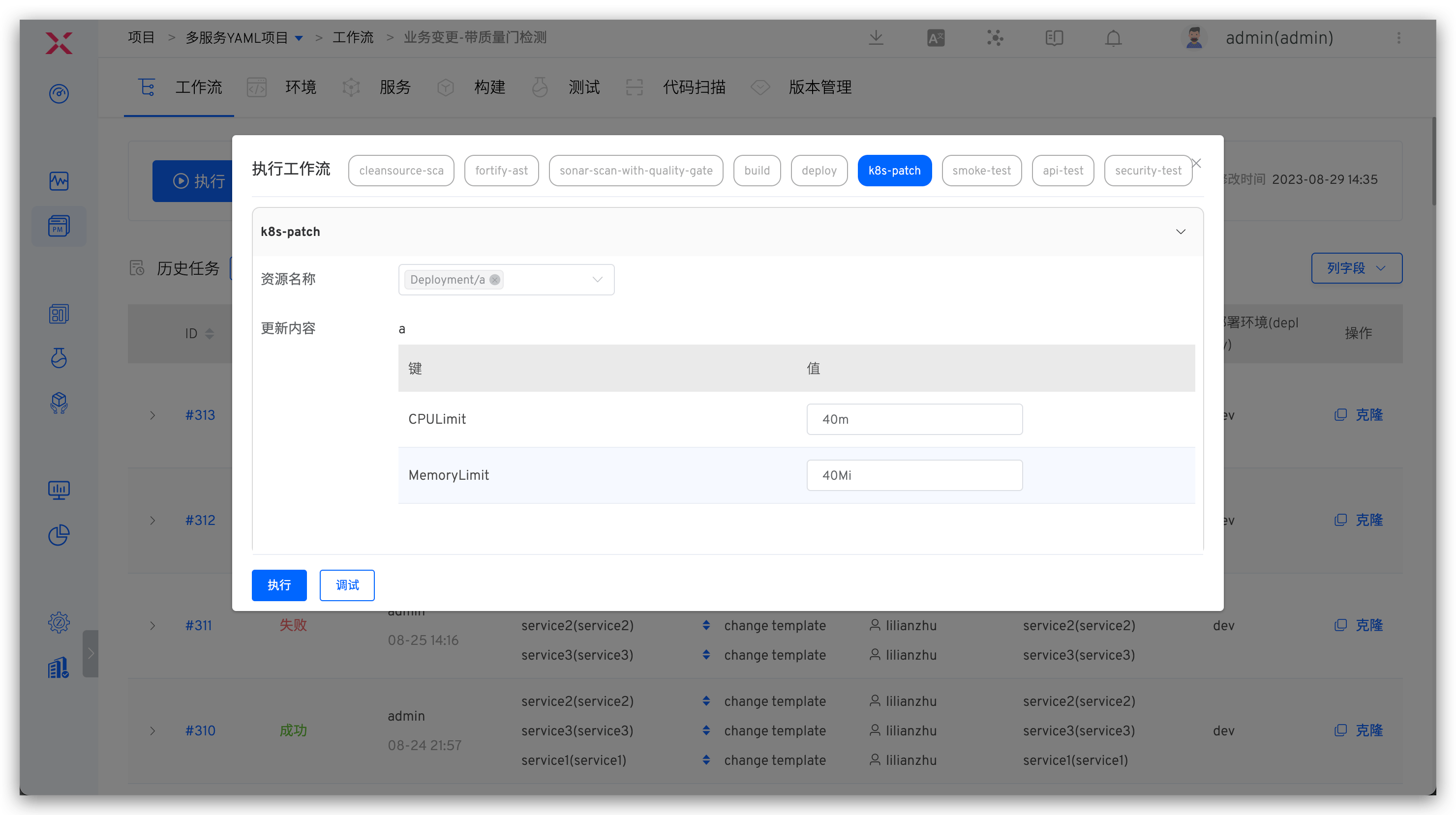 选择环境、Release,按需修改 Chart 信息及 values 内容后执行工作流即可。