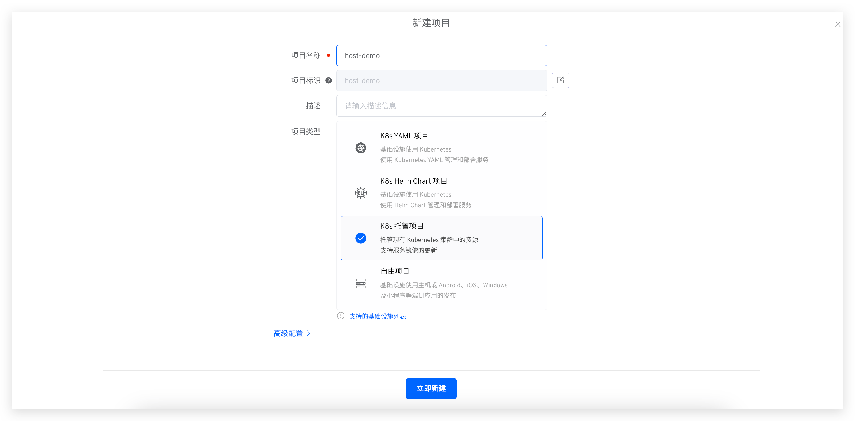 用户可根据需要将现有托管项目一键切换为 K8s YAML 项目。