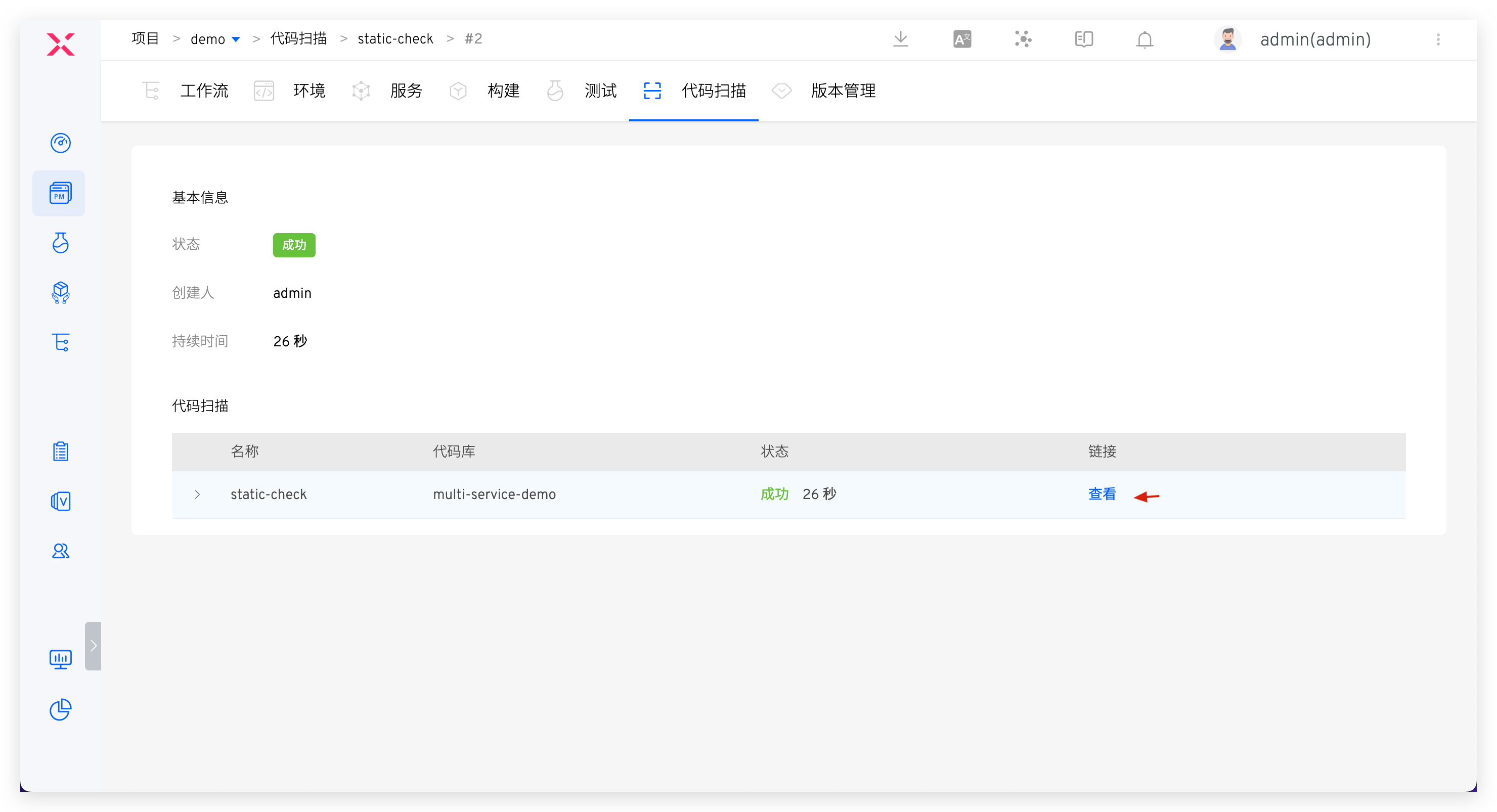 流程包含:代码提交 > 静态扫描 > 构建 > 部署> 自测联调