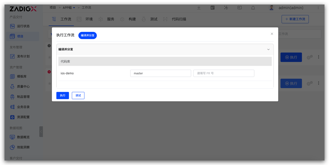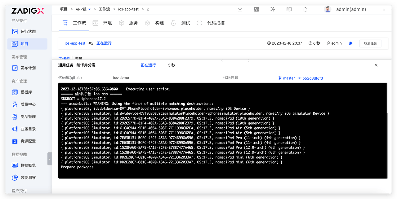 执行工作流选择代码信息,完成 iOS App 自动化发布过程。